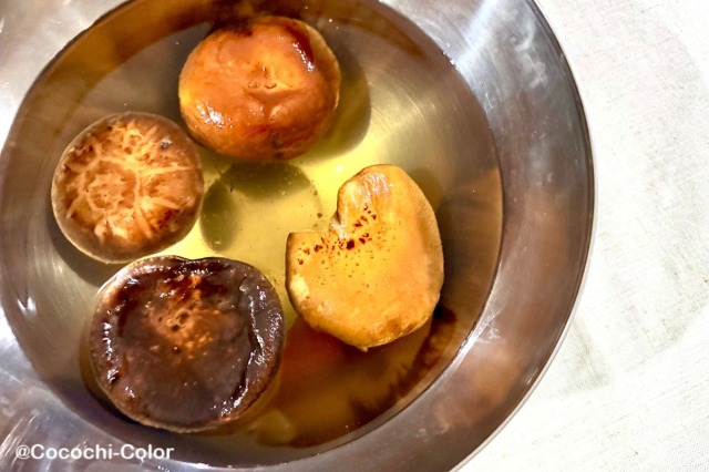 干し椎茸を水で戻し。戻し汁と別に分けておく。